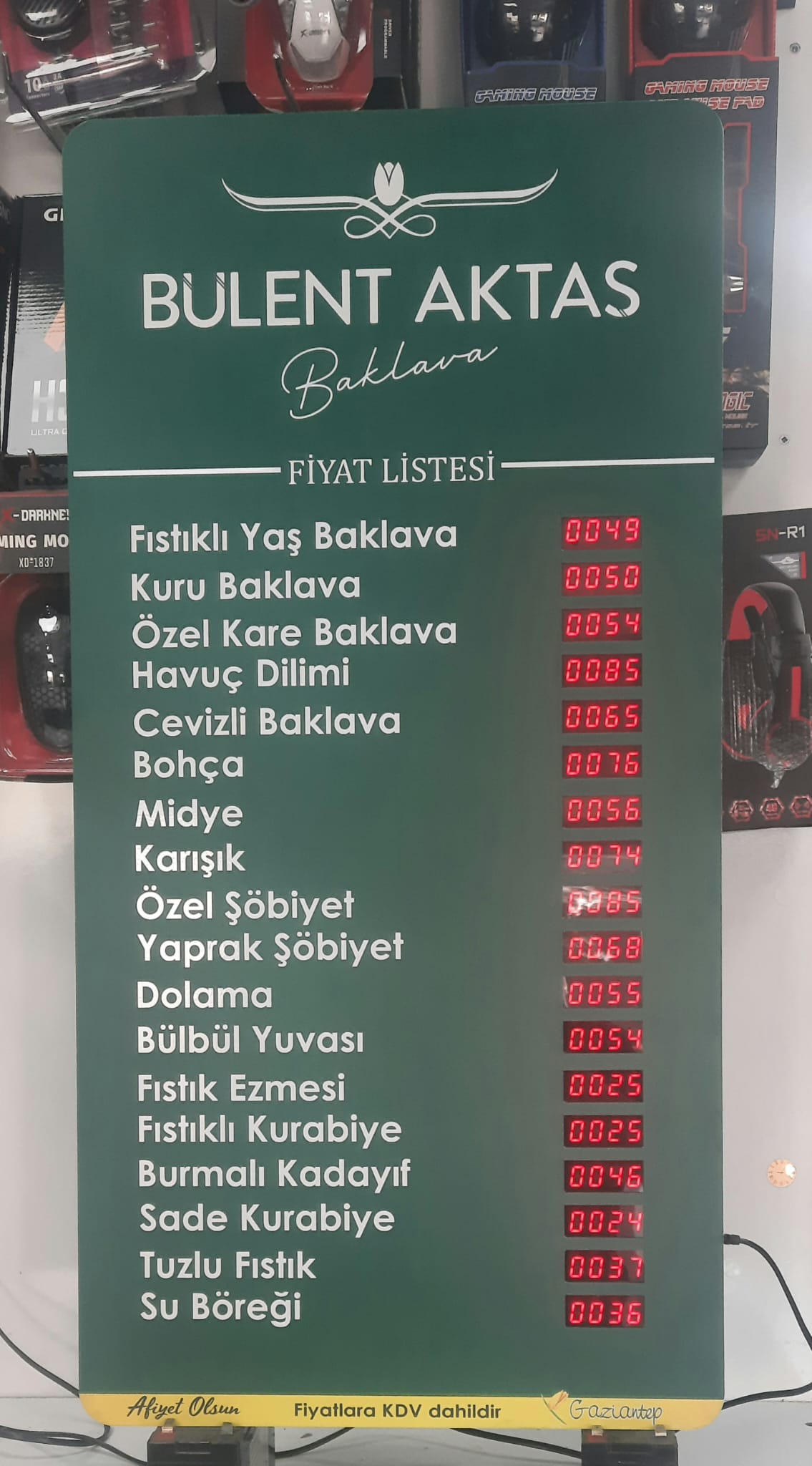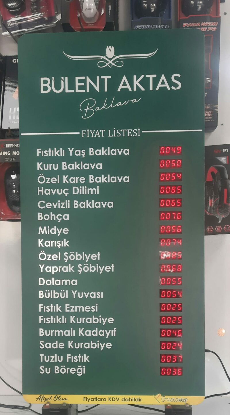 Bülent Aktaş Baklava Dijital Fiyat Listesi